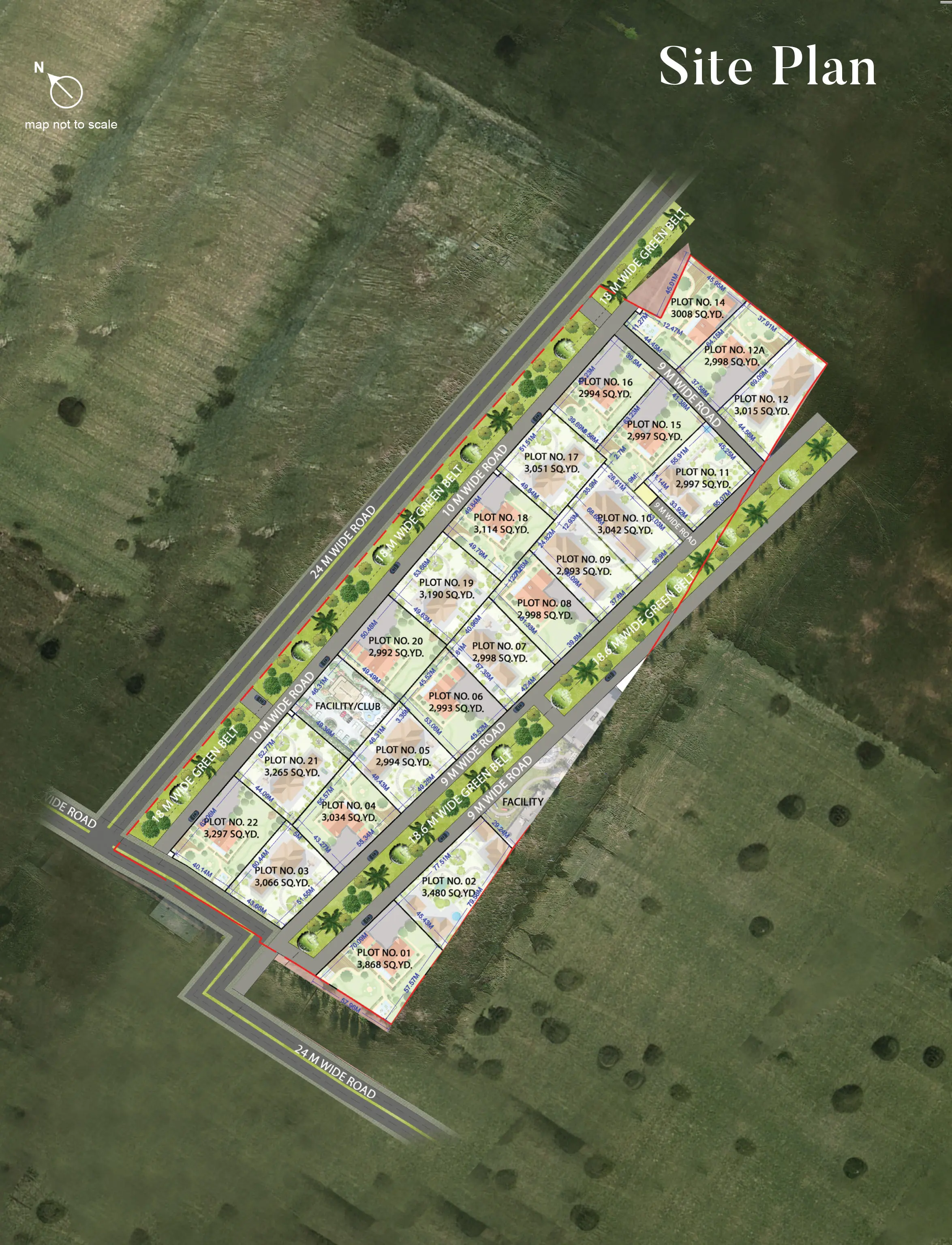 The project offers luxurious farmhouse plots of varying sizes, allowing buyers to design and build homes according to their preferences.