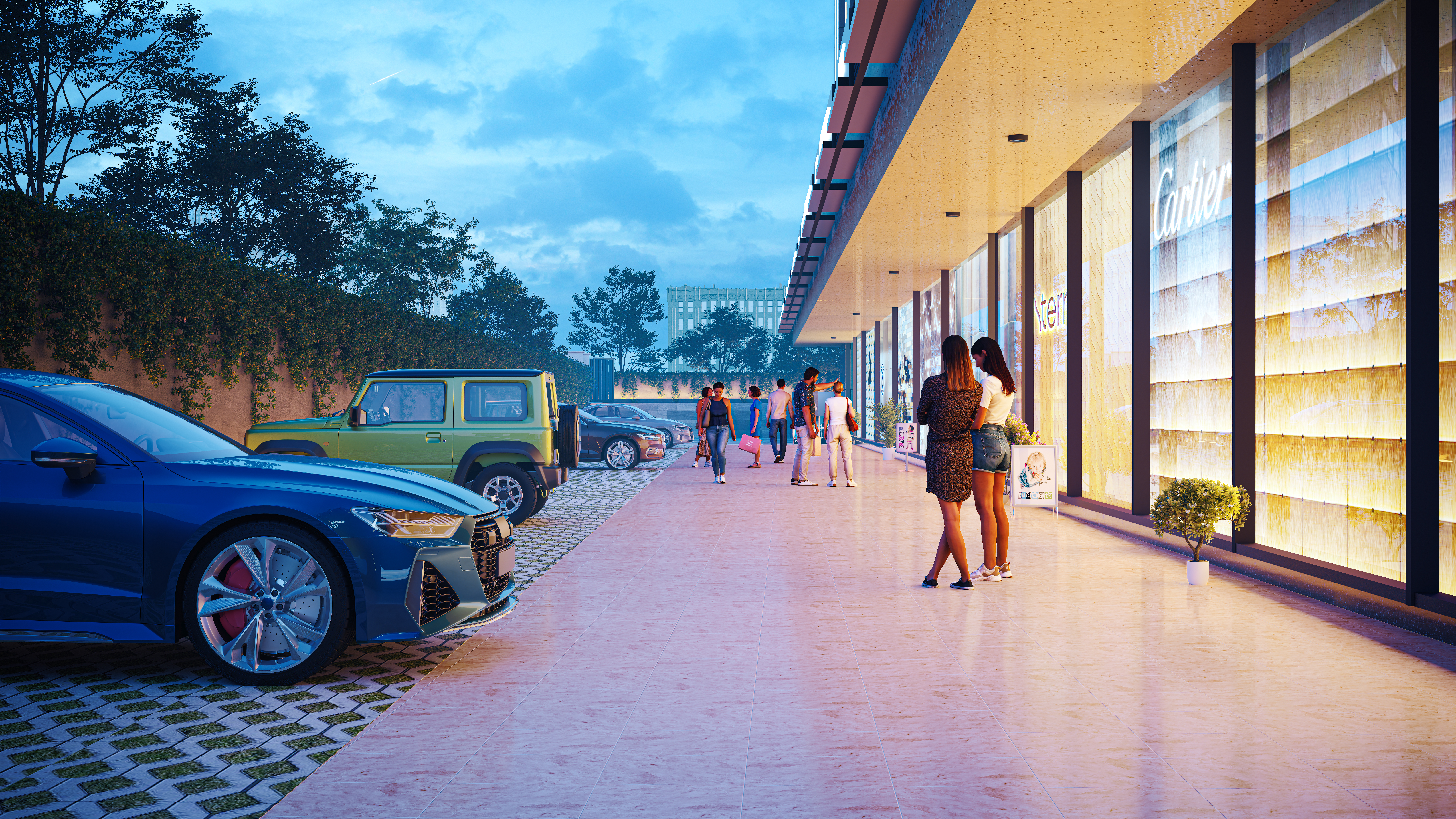 Offering a seamless blend of modern design for office, Retail & Restaurants. Building with a height of 105 mtr. 3 basement & G+24. Ultra-premium showrooms, magnificent frontage, captive HNI catchment, ample car parking & dedicated drop-off zone. Ground floor height 5.8 m, first floor height 4.2m, pedestrian-friendly design.